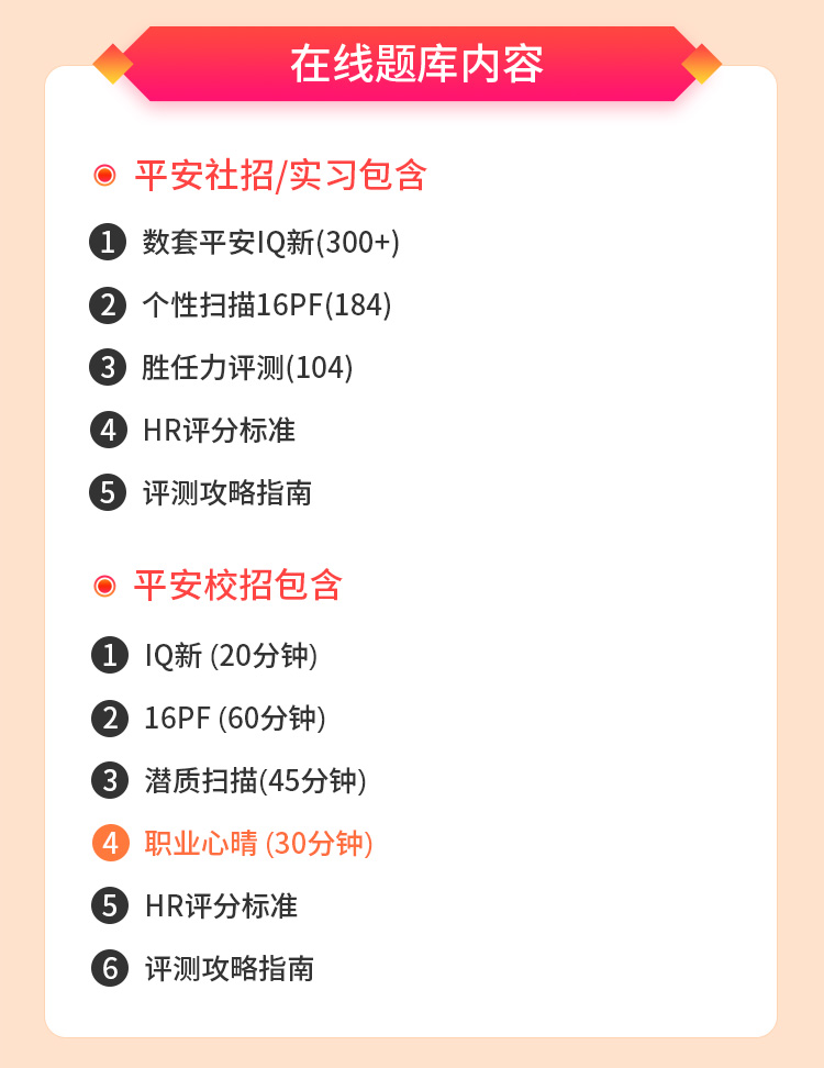图形题、数字题、语言推理、IQ练习、个性扫描、胜任力评测