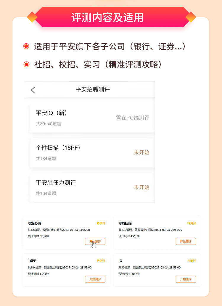 图形题、数字题、语言推理、IQ练习、个性扫描、胜任力评测